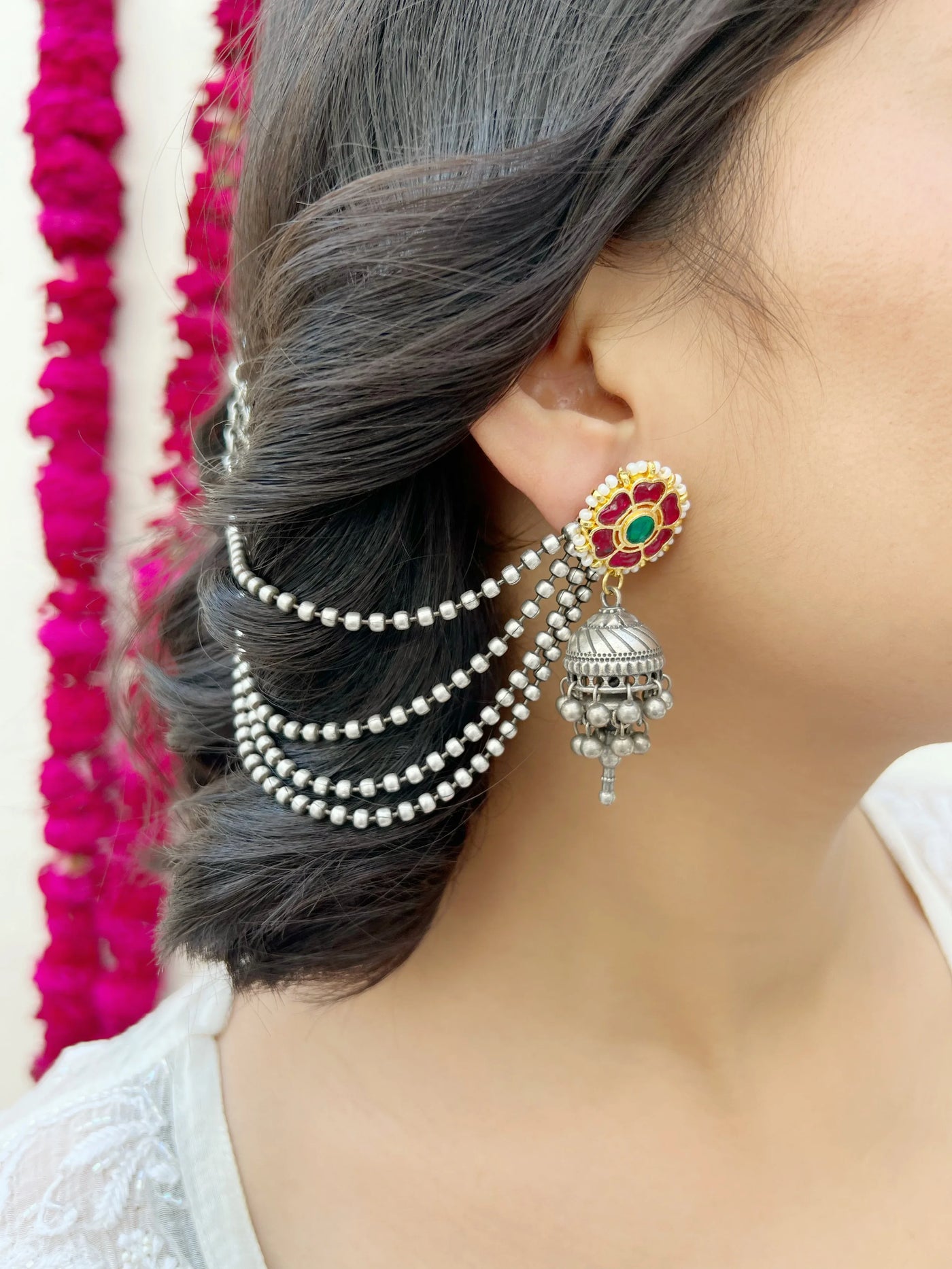 "Elevate your Jhumka style with our Sahara chains! 💎✨ These oxidised chains are designed to attach to your Jhumka earrings...