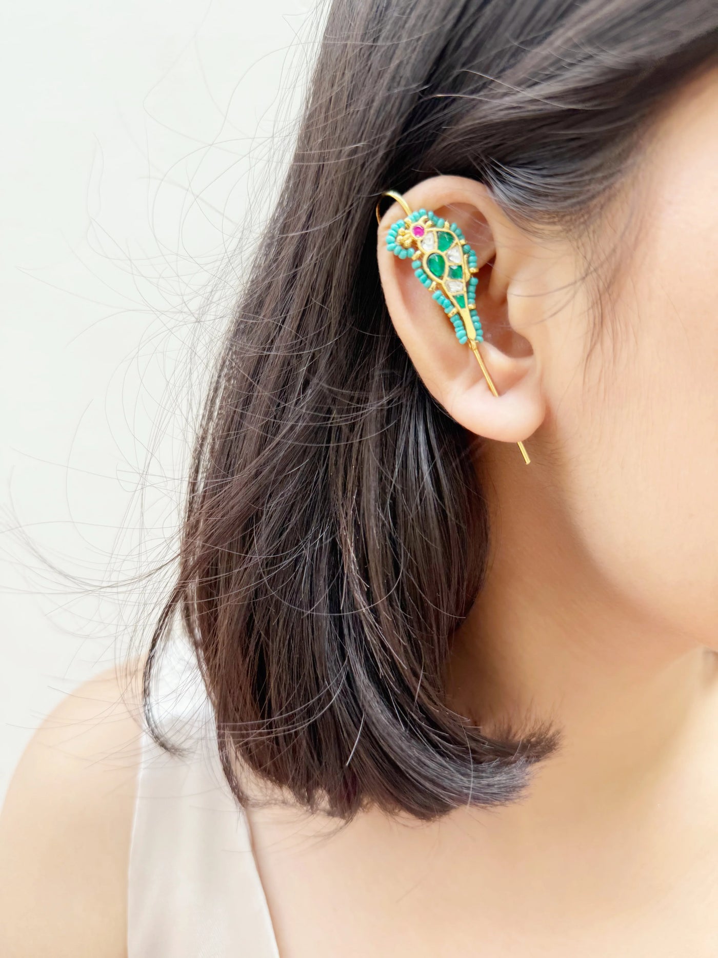 “Inspired by the night sky and the delicate patterns of nature, our Tara Collection features earrings with Paanchi Kundan pieces that shimmer like stars. Each piece brings the beauty of the universe to your fingertips, radiating elegance and sophistication”.