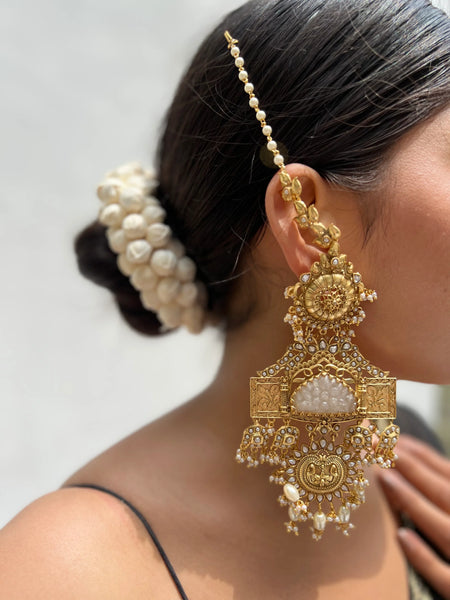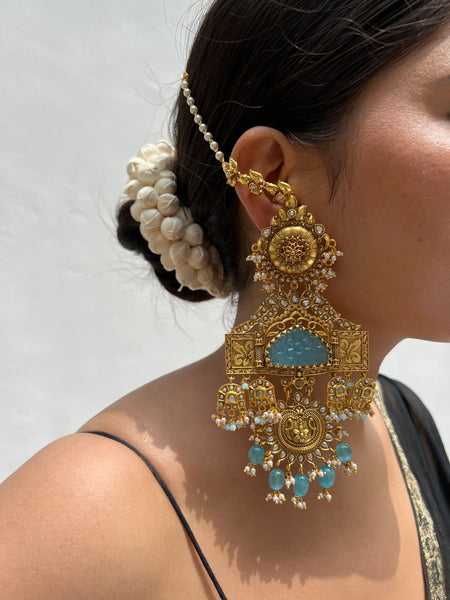 A pair of zircon danglers to accentuate your party/ wedding look. Qayanat danglers are a true representation of brilliant craftsmanship. Makeing time- 5-7 days Please note that these products are carefully handcrafted, which may result in minor variations that add to their unique charm and...