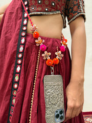 Material: Handcrafted with wooden motifs, shells, coins, ghunghroos & multi-colored threads Design: Fusion of traditional craft and modern boho...