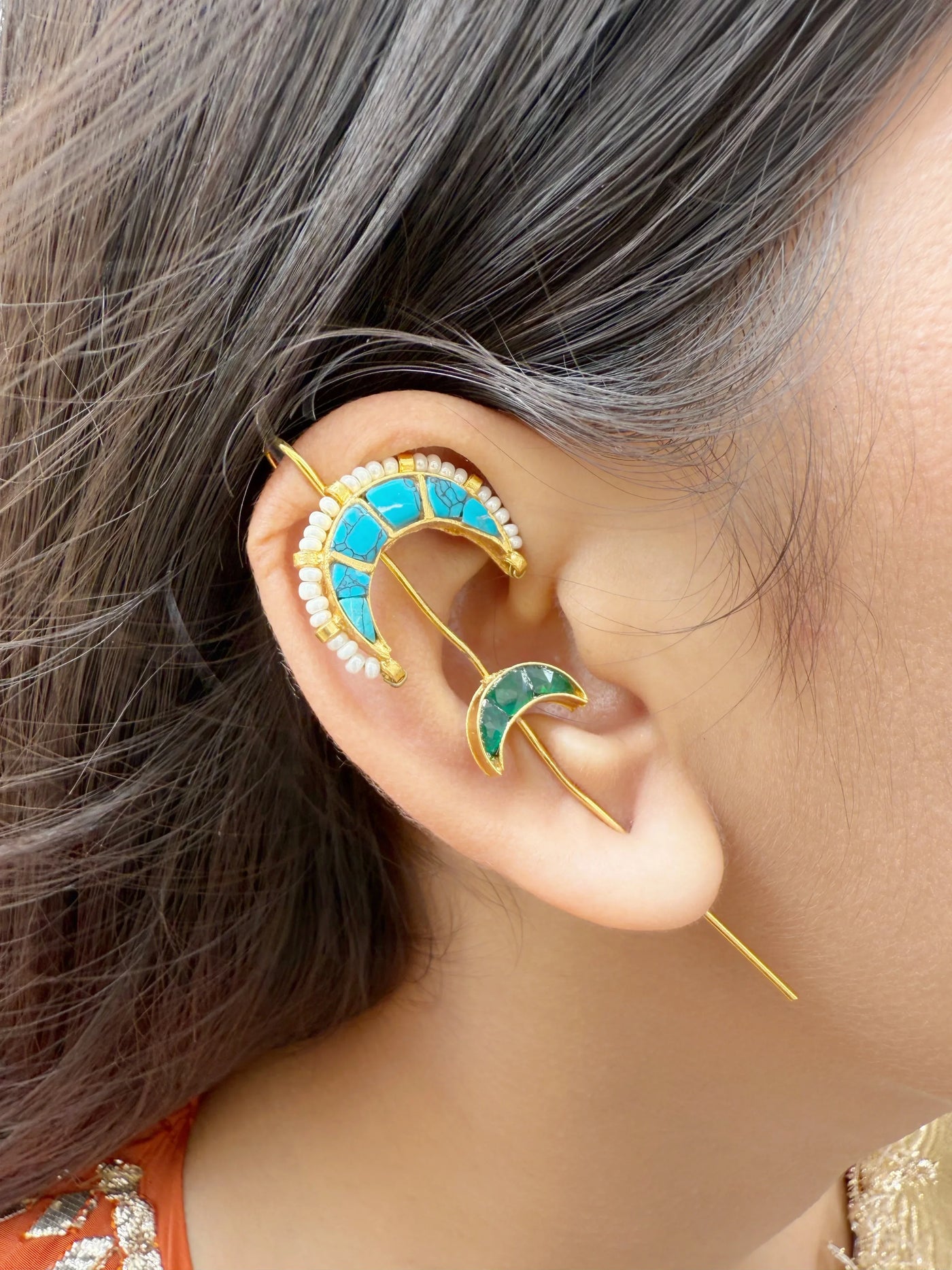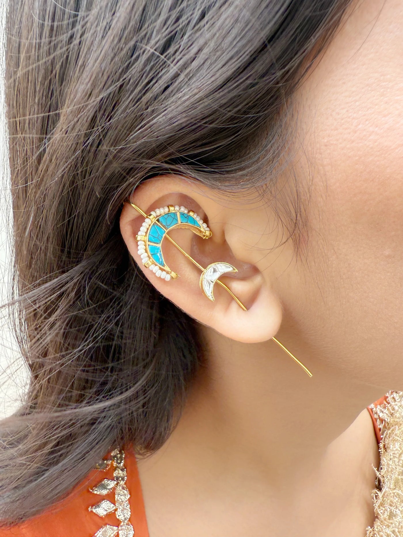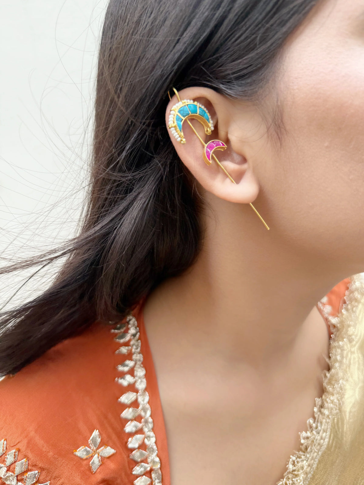 “Inspired by the night sky and the delicate patterns of nature, our Tara Collection features earrings with Paanchi Kundan pieces that shimmer like stars. Each piece brings the beauty of the universe to your fingertips, radiating elegance and sophistication”.