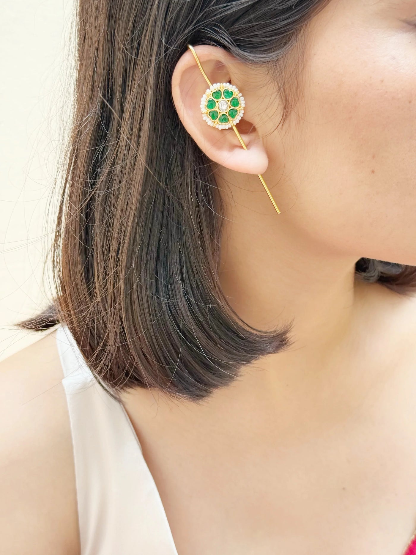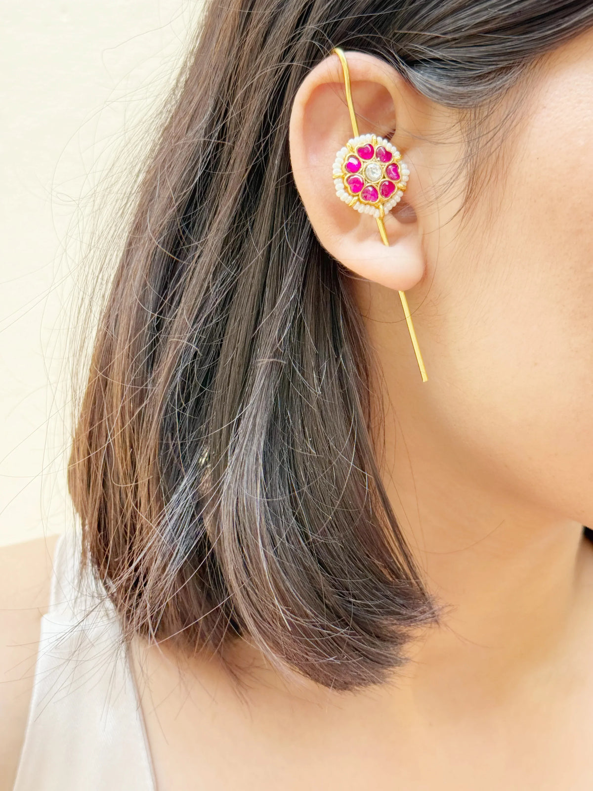 “Our needle earrings and bugadi designs boast intricate details and subtle sparkle, making a statement with every wear. Crafted from high-quality brass and Paanchi Kundan, these earrings are as durable as they are beautiful. Whether dressing up or dressing down, our minimal desi jewelry pieces shine bright, elevating your everyday style."