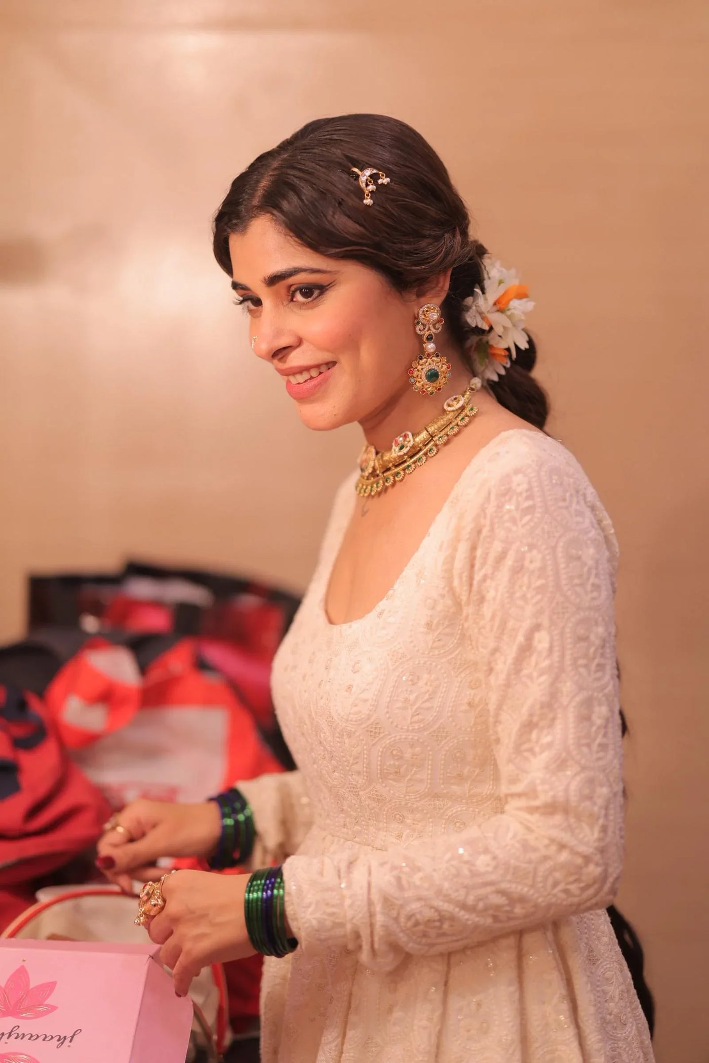 “Our needle earrings and bugadi designs boast intricate details and subtle sparkle, making a statement with every wear. Crafted from high-quality brass and Paanchi Kundan, these earrings are as durable as they are beautiful. Whether dressing up or dressing down, our minimal desi jewelry pieces shine bright, elevating your everyday style."