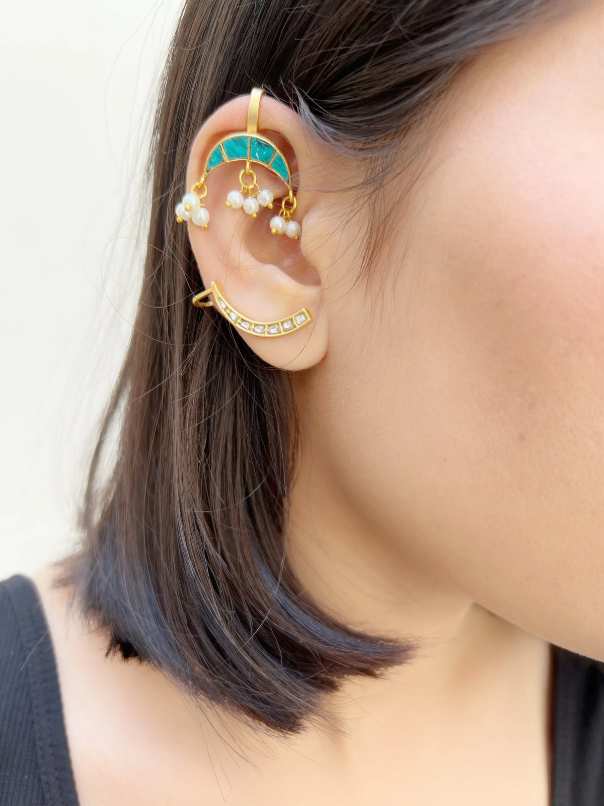 “Inspired by the night sky and the delicate patterns of nature, our Tara Collection features earrings with Paanchi Kundan pieces that shimmer like stars. Each piece brings the beauty of the universe to your fingertips, radiating elegance and sophistication”.