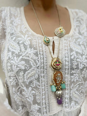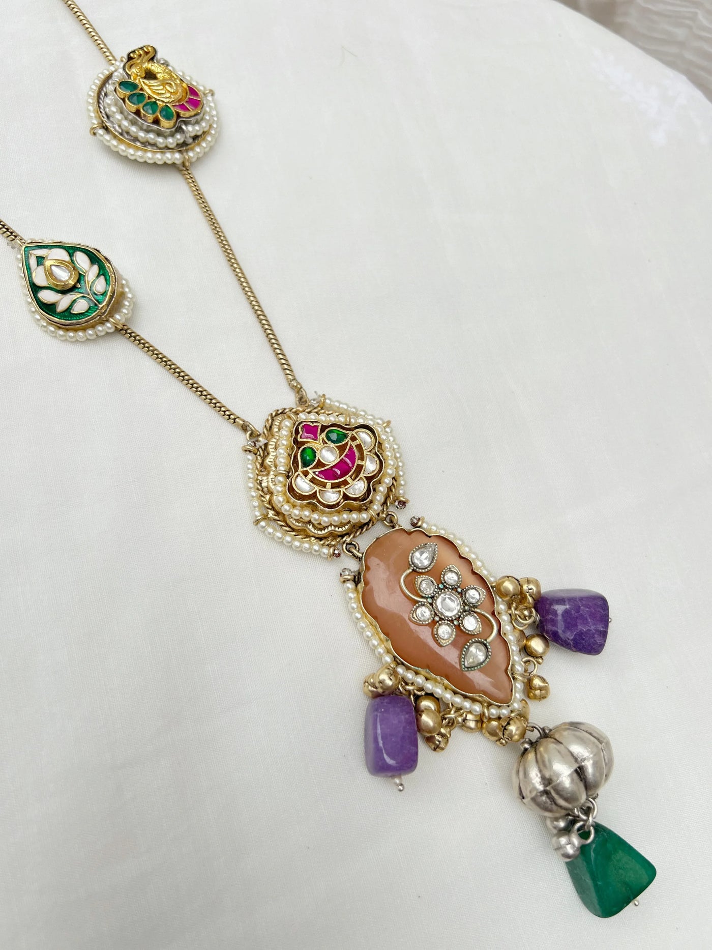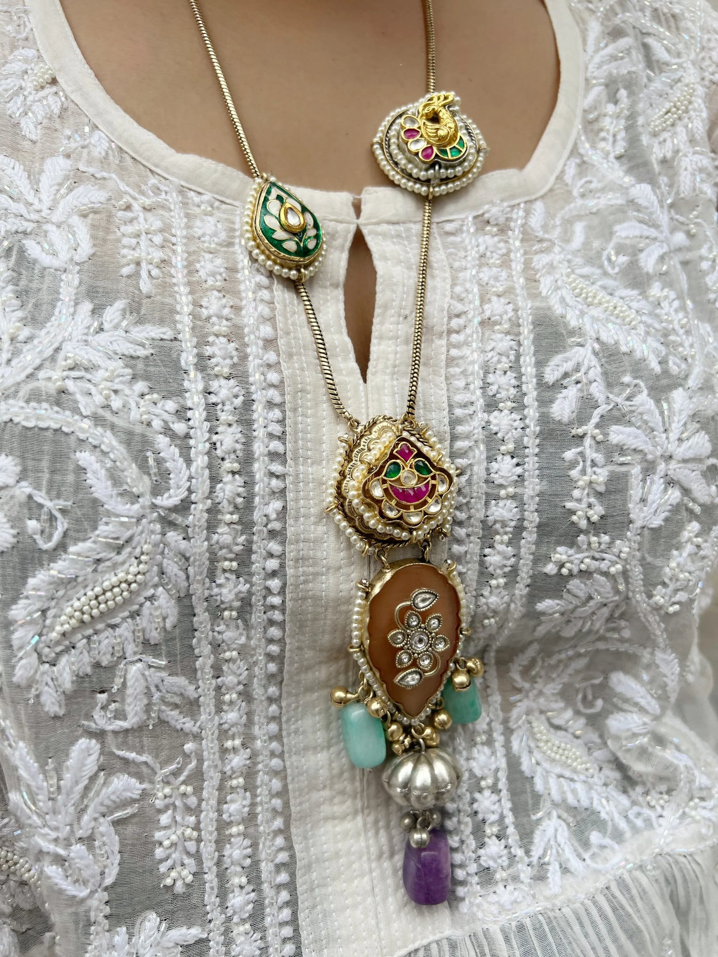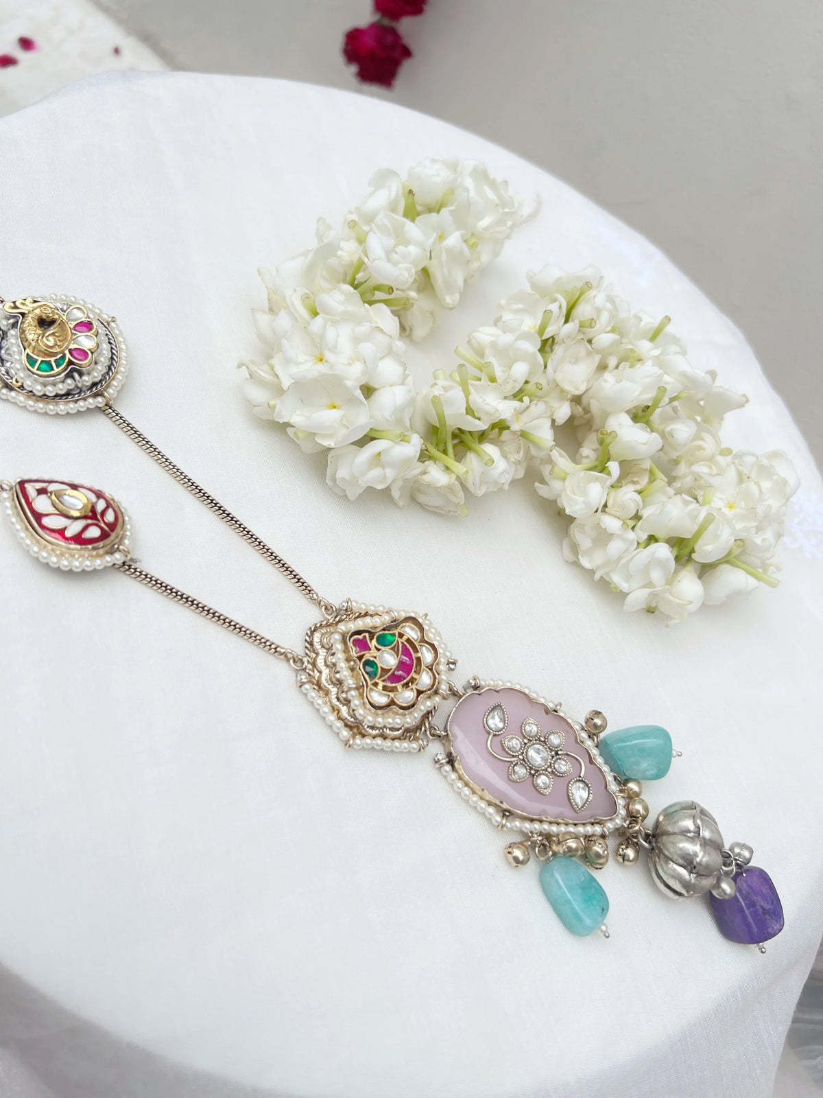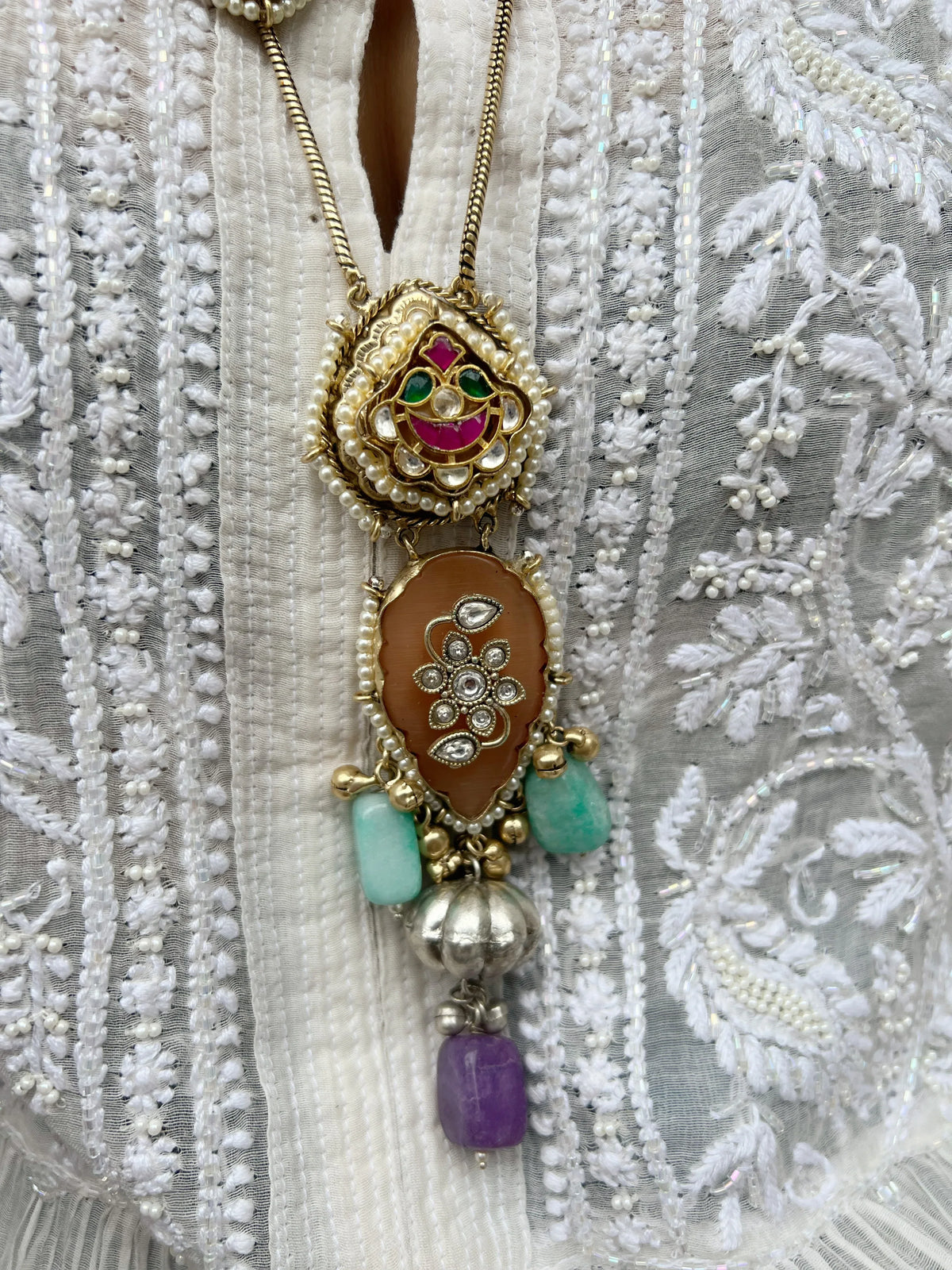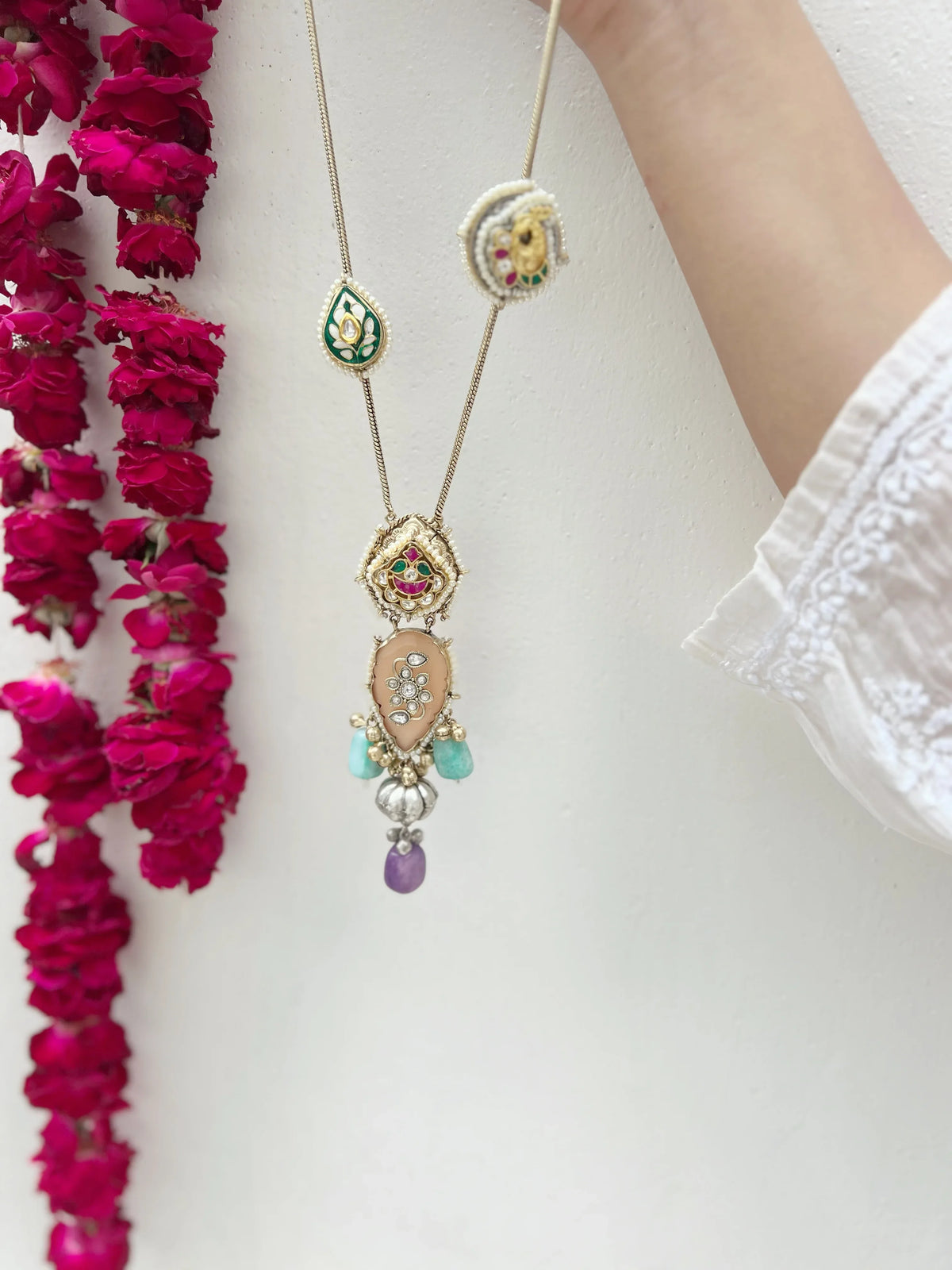 Aarzoo Pendant Necklace - Powder Pink & Green/Pink Stone