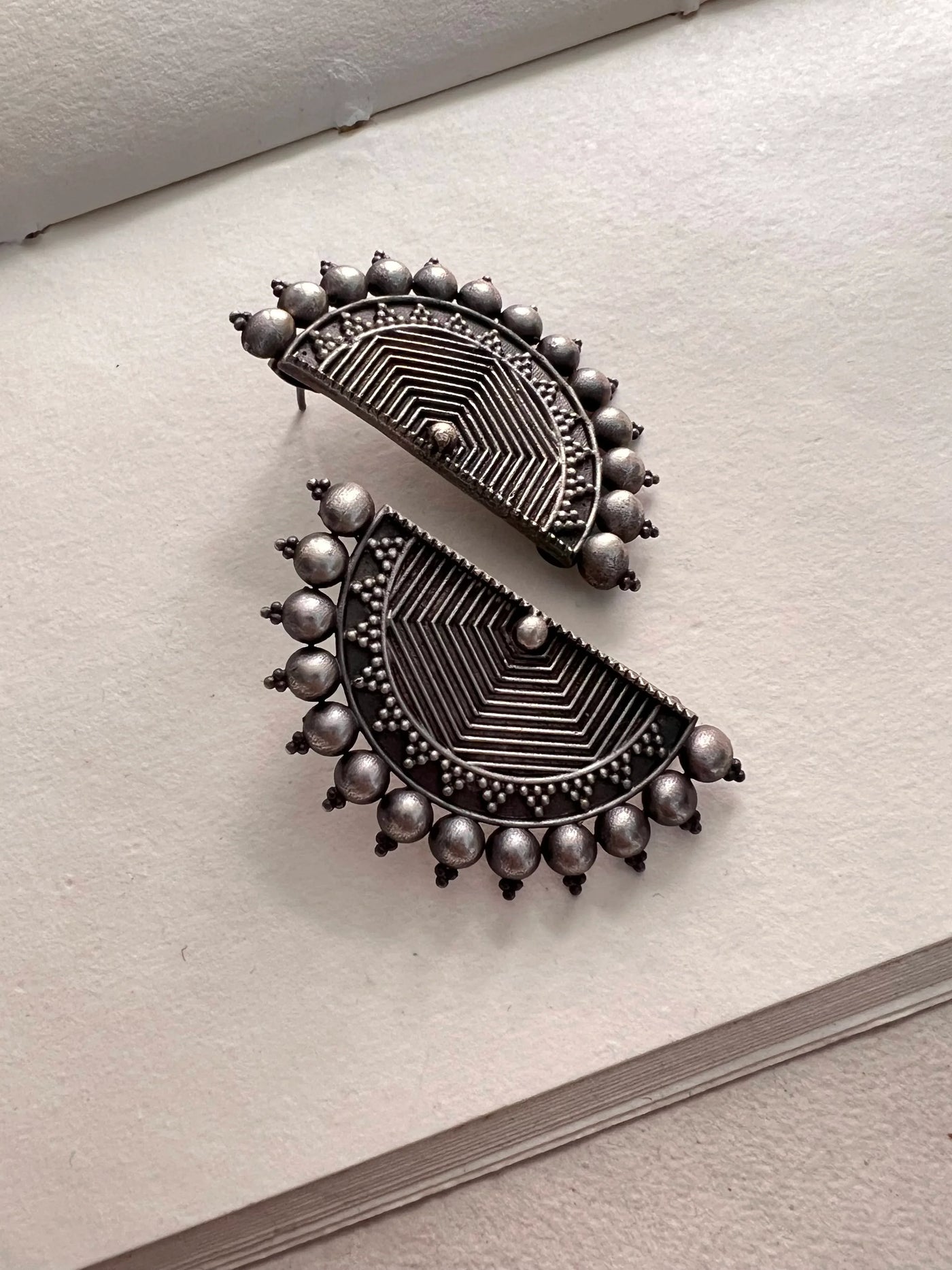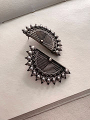 Create a stylish yet comfortable look with these elegant ardhachandra silver earrings. Please note that these products are carefully handcrafted,...