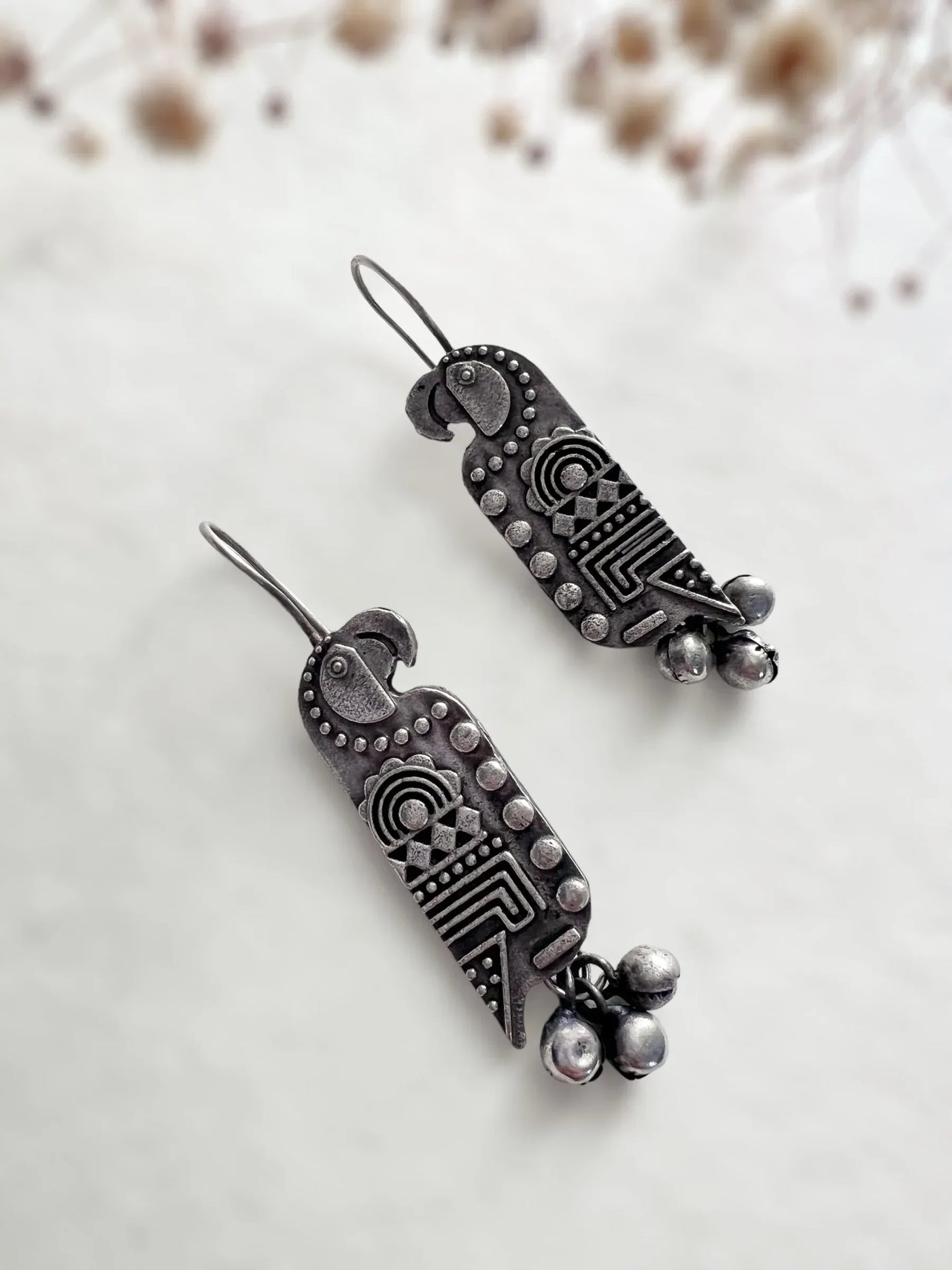 Carved Parrot Hook Earrings