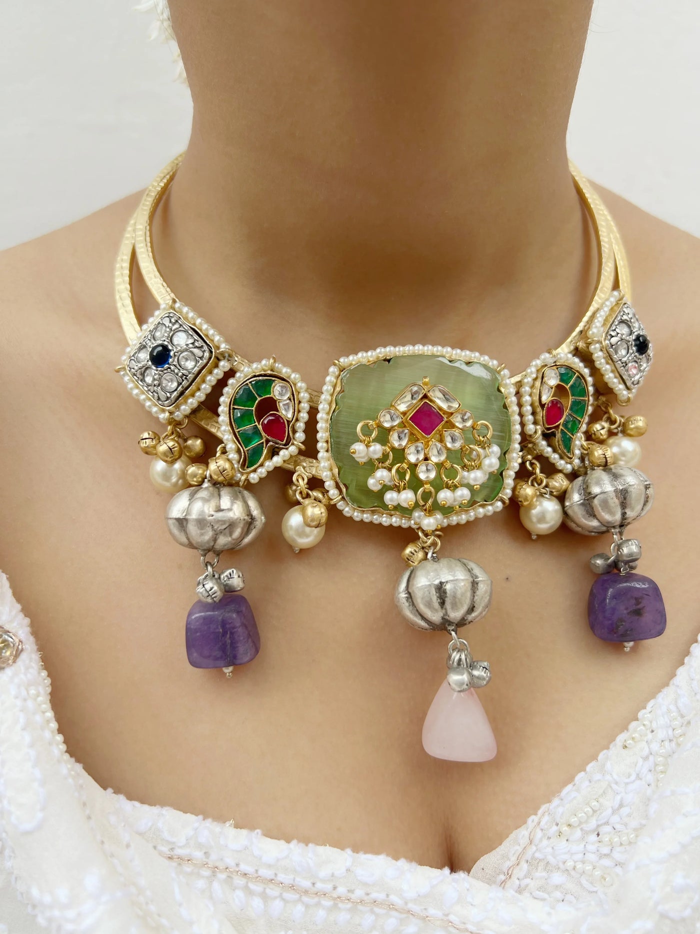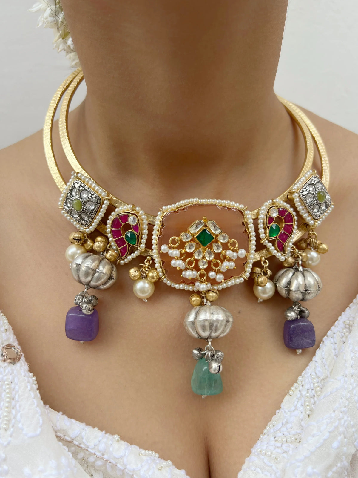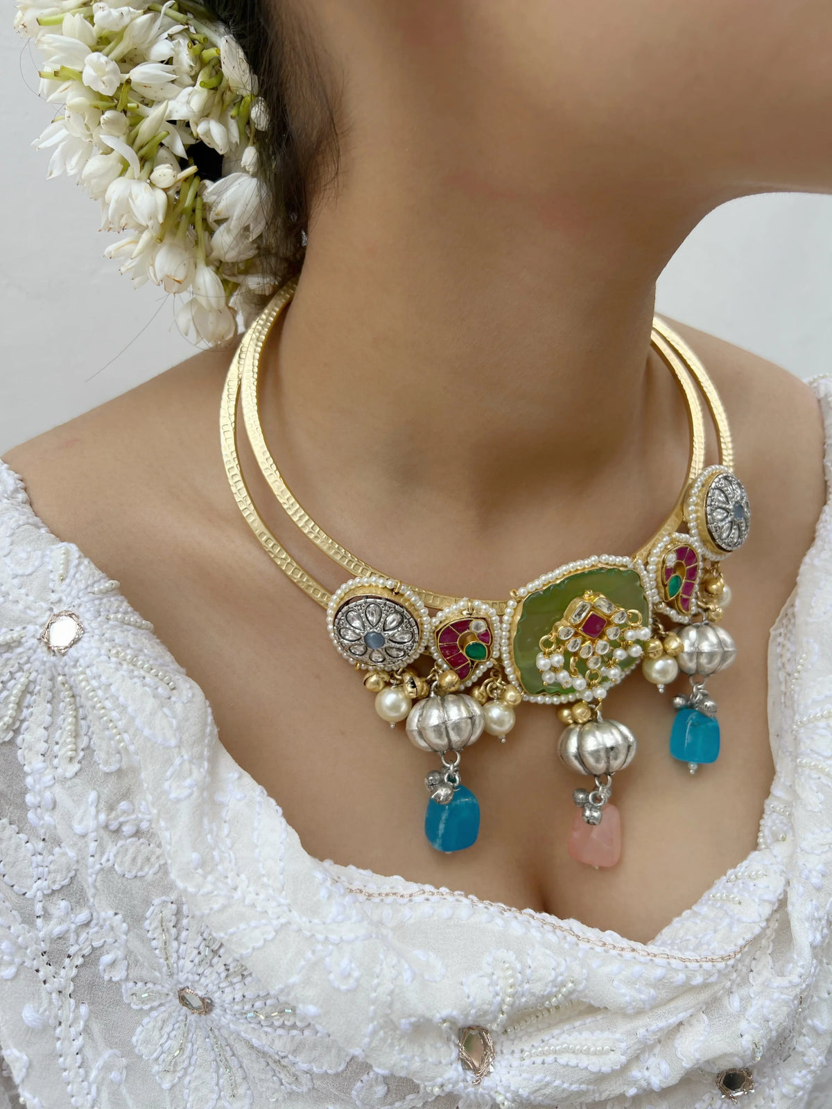 "Add a touch of nature's elegance with our Hasli adorned with natural stones and intricate Panchi Kundan work! 💎💃🏽️ Each...