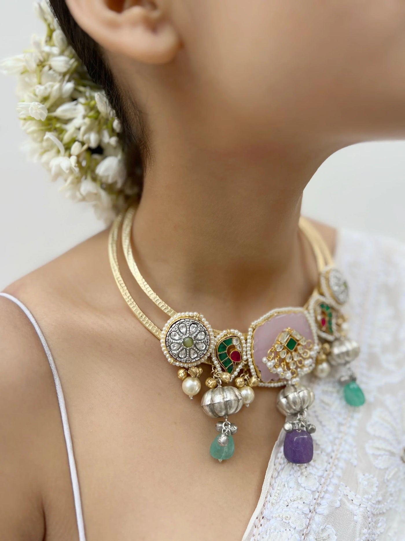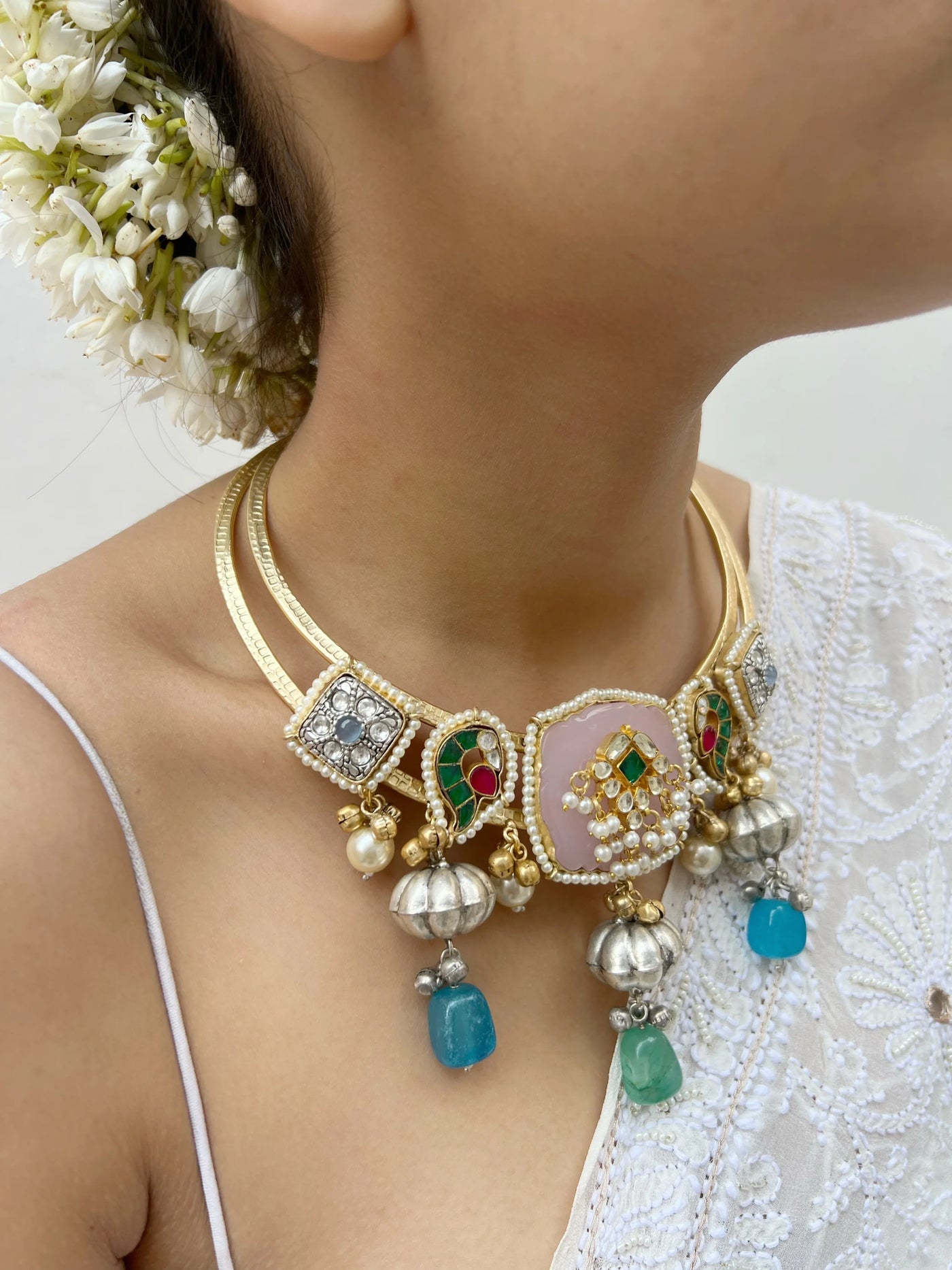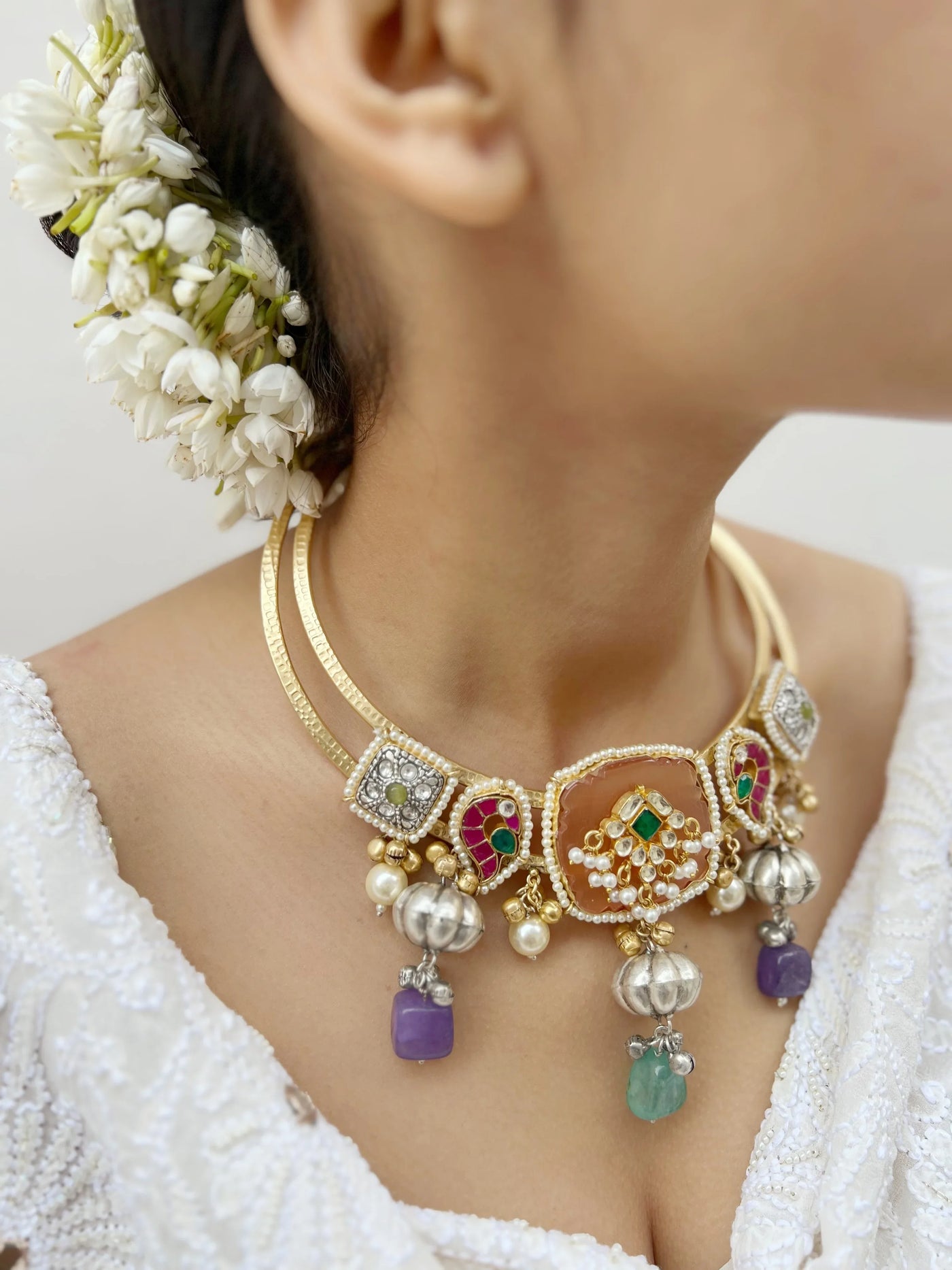 "Add a touch of nature's elegance with our Hasli adorned with natural stones and intricate Panchi Kundan work! 💎💃🏽️ Each...