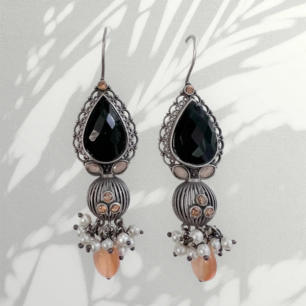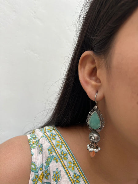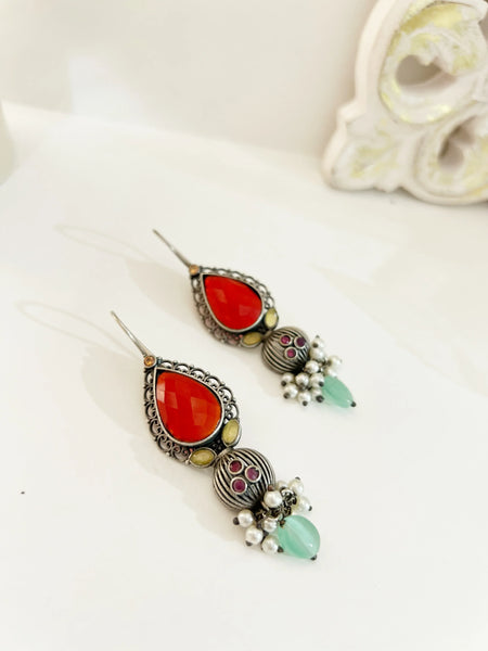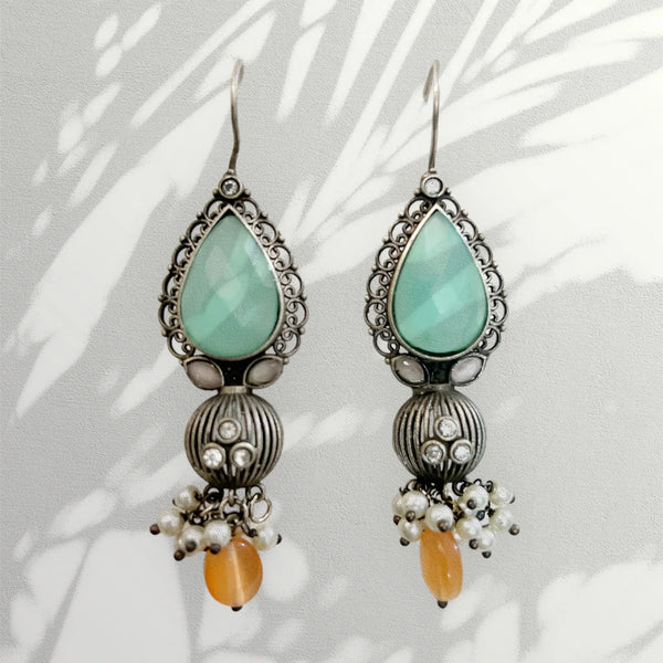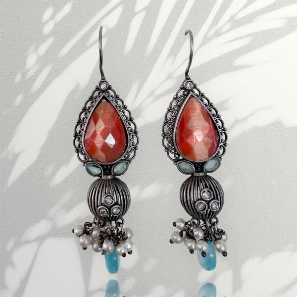 Sahara to satisfy your love for ethnic jewels. A pair of silver, traditional earrings with embellished Blue & Orange stones. Please note that these products are carefully handcrafted, which may result in minor variations that add to their unique charm and character. These variations are...